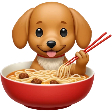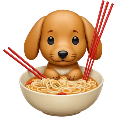 Dog eating a bowl of ramen emoji