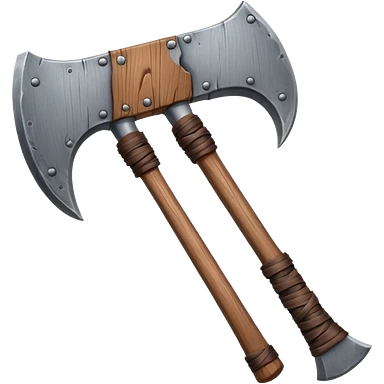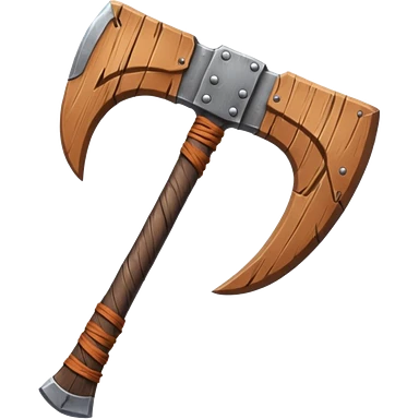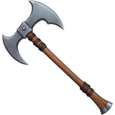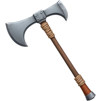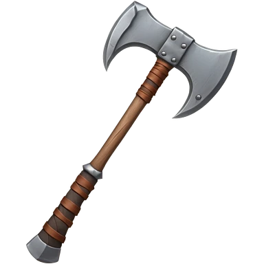 barbarian axe object icon, huge double-bladed axe, rough metal, wooden handle, leather wraps, fantasy style, 3D cartoon, mobile game icon style, centered, clean background, soft shadow, no text, no watermark emoji
