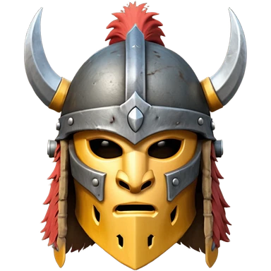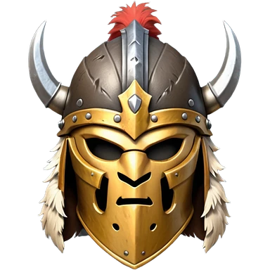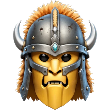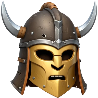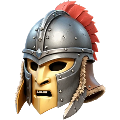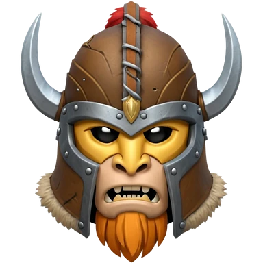 barbarian helmet object icon, rough metal helmet, fur details, leather straps, battle-worn scratches, fantasy style, 3D cartoon, mobile game icon style, centered, clean background, soft shadow, no text, no watermark emoji