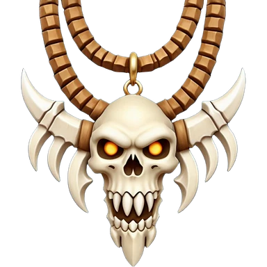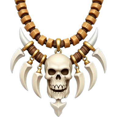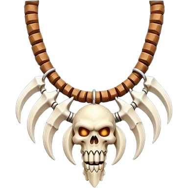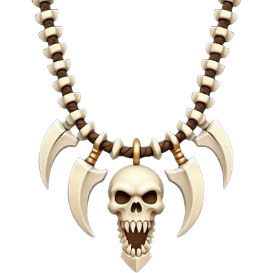 barbarian necklace object icon, necklace made of bones and fangs, rugged tribal jewelry, 3D cartoon, mobile game icon style, centered, clean background, no text, no watermark emoji