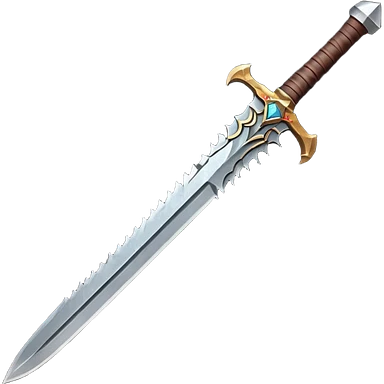 barbarian sword object icon, large heavy sword, rough steel blade, leather wrapped handle, battle-worn scratches, fantasy style, 3D cartoon, mobile game icon style, centered, clean background, soft shadow, no text, no watermark emoji