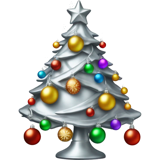 Retro silver Christmas tree with multicolor lights and ornaments emoji | AI Emoji Generator