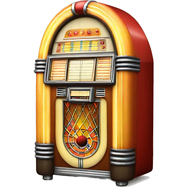 3D render of Jukebox, vintage 1980s audio equipment aesthetic, tactile analog buttons, neon pink and purple light tubes with chrome trim, mixed wood grain and brushed aluminum textures, Apple emoji style, isolated on white background --v 6.0 emoji