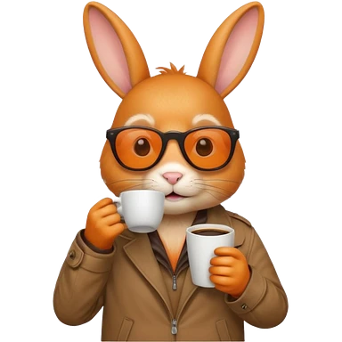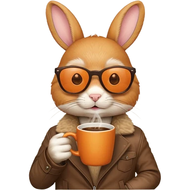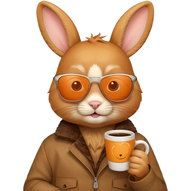 Orange rabbit, wearing brown jacket, sunglasses, holding coffee mug emoji