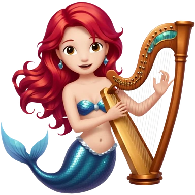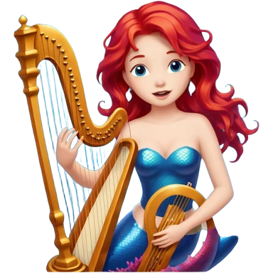 Singing Mermaid – Holding harp, red hair emoji