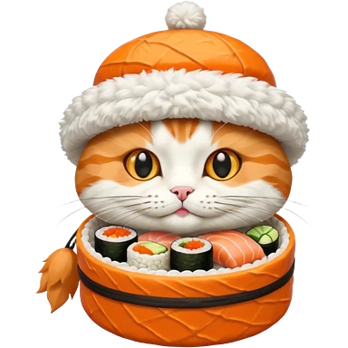cat wearing a hat made out of sushi emoji