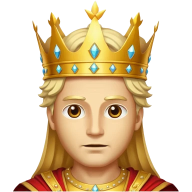 vull un perosnatge estil bimoji que sigui alt i fort amb una musculatura marcada i poderosa. Té una barba espessa i el cabell arriba fins a l'alçada del coll. Se'l representa amb la indumentària real i una corona al cap. emoji