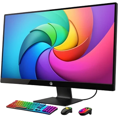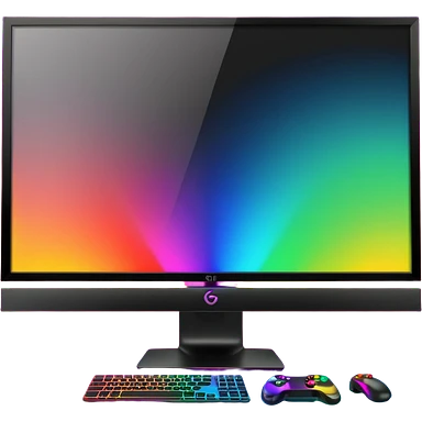rgb gaming computer on black desk with a black keyboard and mouse emoji | AI Emoji Generator