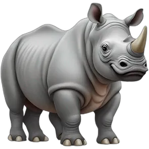 cinematic-noble-cute-rhino-portrait-emoji,slate-grey-hide-poised-and-regal,-with-a-massive,-powerful-build-and-a-thick,--deep-set-soulful-piercing-eyes,-simplified-yet-sharp-and-sophisticated-features,-highly-detailed,-large-black-eyes, white horn, front facing, zoomed out showing shoulders emoji