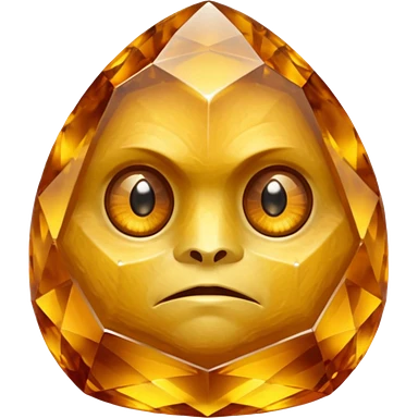 Single gemstone rock character, warm golden citrine, squat and heavy like a rock, with carved facets emoji
