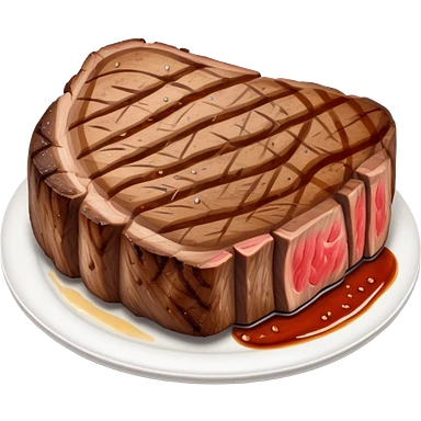 raw ribeye steak thick red meat white marbling rounded shape curved fat cap visible muscle grain fresh moist no grill plate garnish no faces clean 3D soft shadows transparent background emoji scale emoji