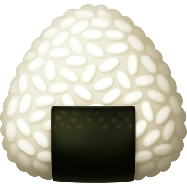 kawaii triangular onigiri emoji, convenience store rice ball wrapped in seaweed with a yellow label, simple cute icon style emoji