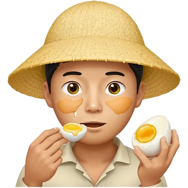 Extremely stereotypical Asian wearing a rice hat with a fu Manchu mustache and super squinty eyes emoji