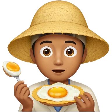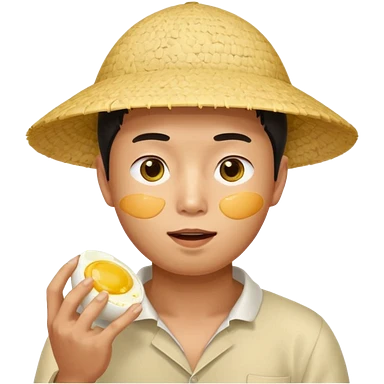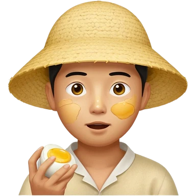 Extremely stereotypical Asian wearing a rice hat with a super long mustache emoji