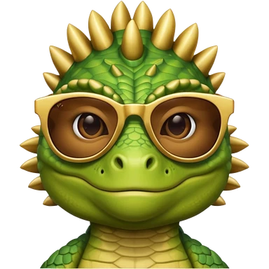 rich capitalist iguana head with golden glossy sunglasses emoji
