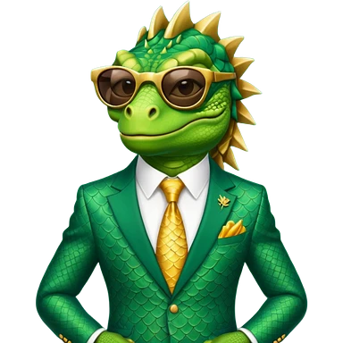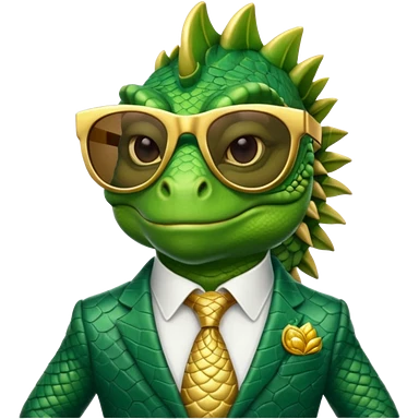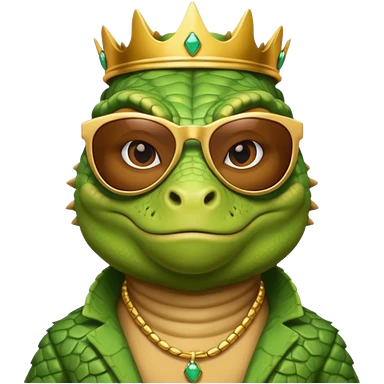 rich capitalist iguana king gold sunglasses emoji | AI Emoji Generator