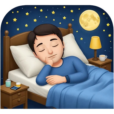Rich man sleeping in a bed at night, dark hair, he is german very beautiful looks emoji