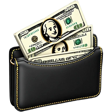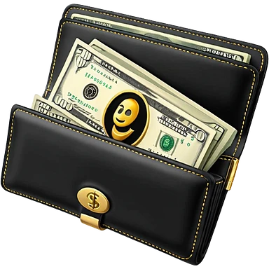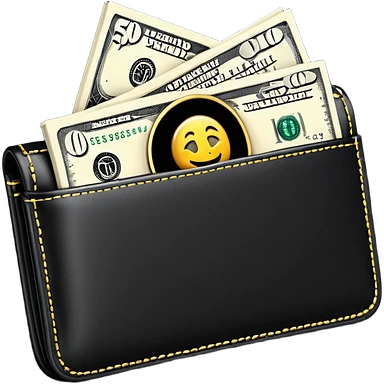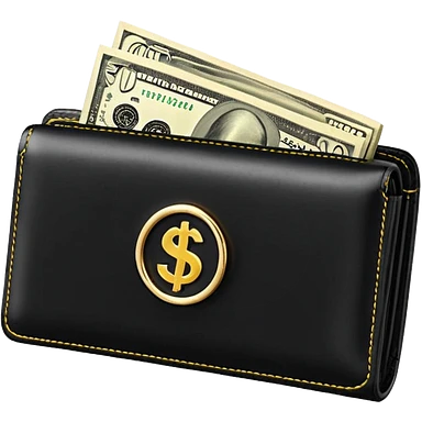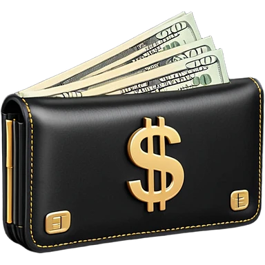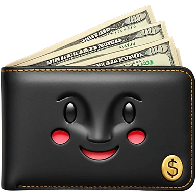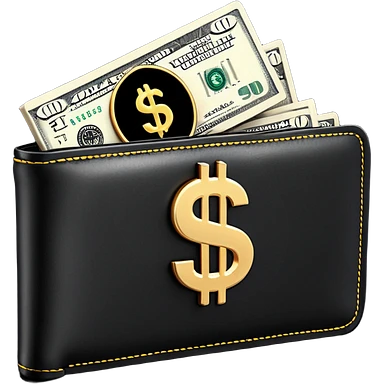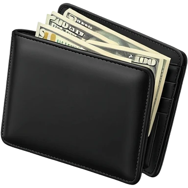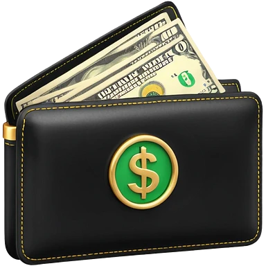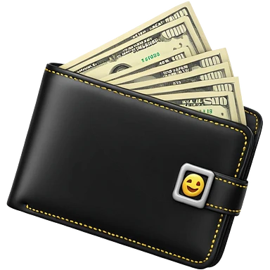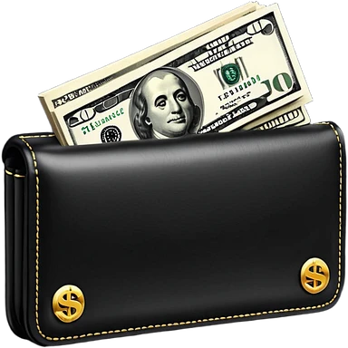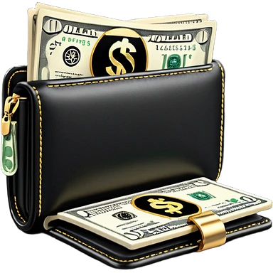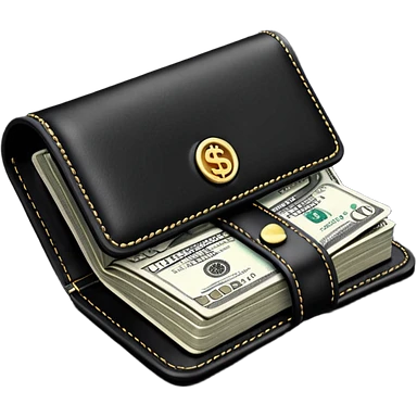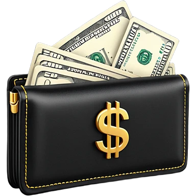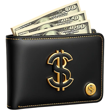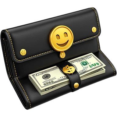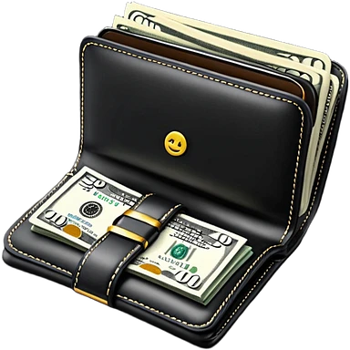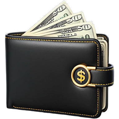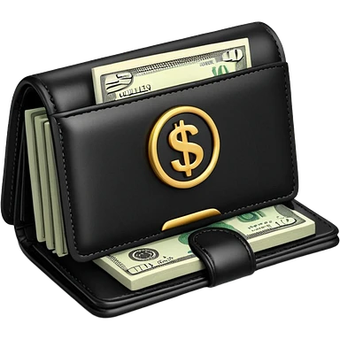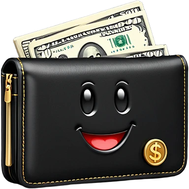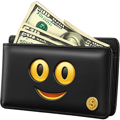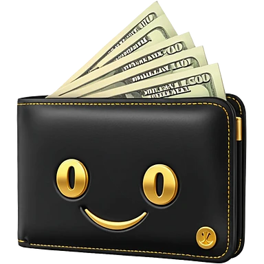 Rich emoji style black leather wallet with dollar bills, luxury money vibe, premium 3D emoji, ultra clean, high detail, no background emoji