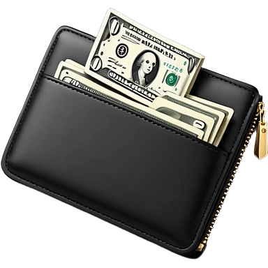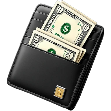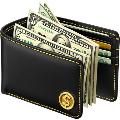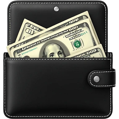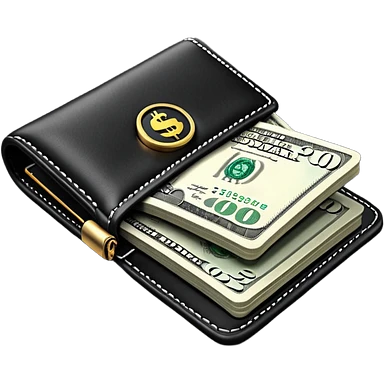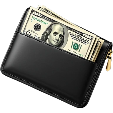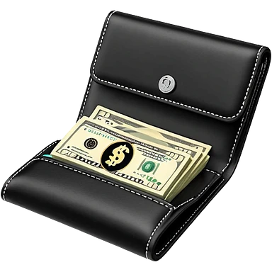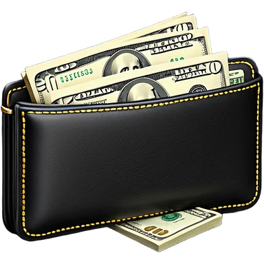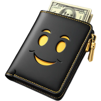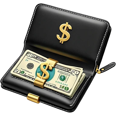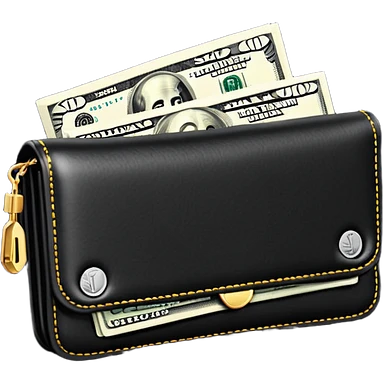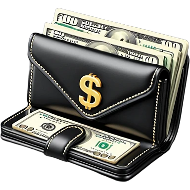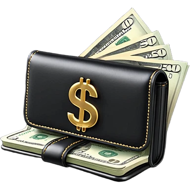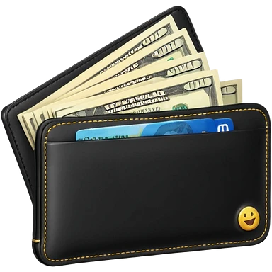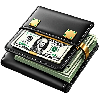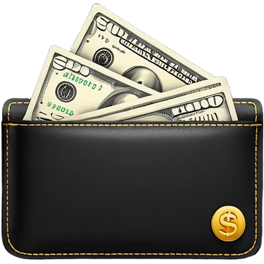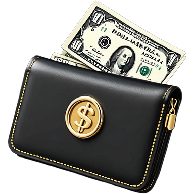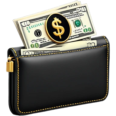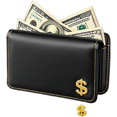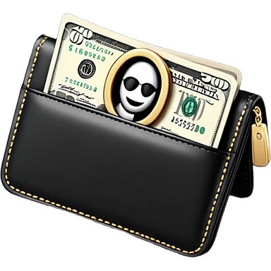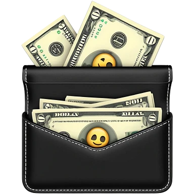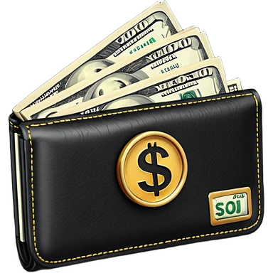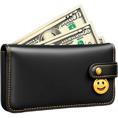 Rich emoji style black leather wallet with dollar bills, luxury money vibe, premium 3D emoji, ultra clean, high detail, no background emoji