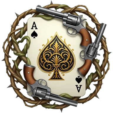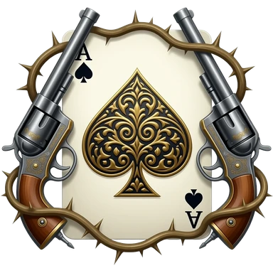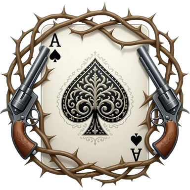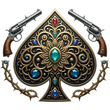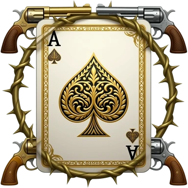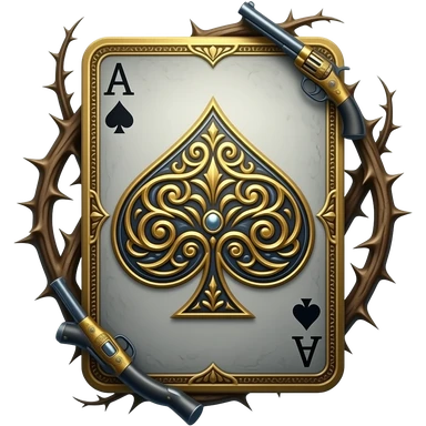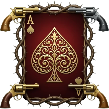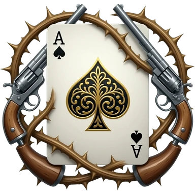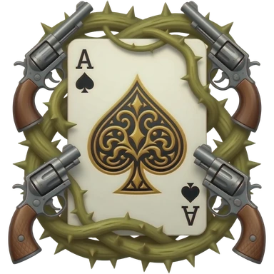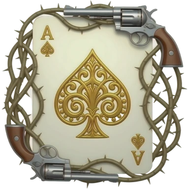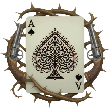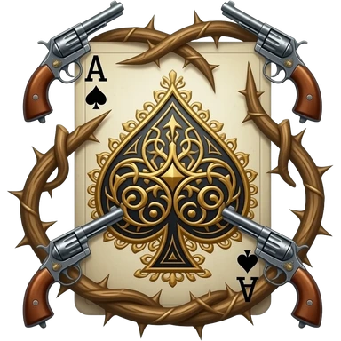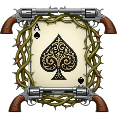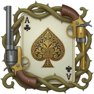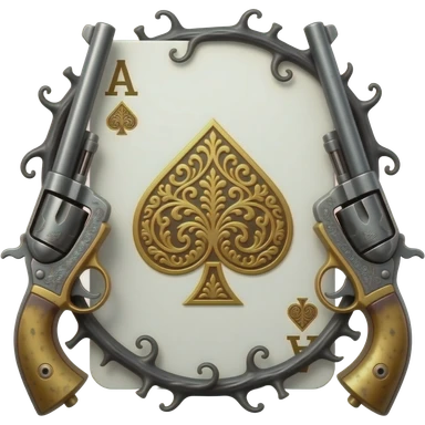 richly ornamented spade ace surrounded by tendrils of thorns and antique revolvers emoji
