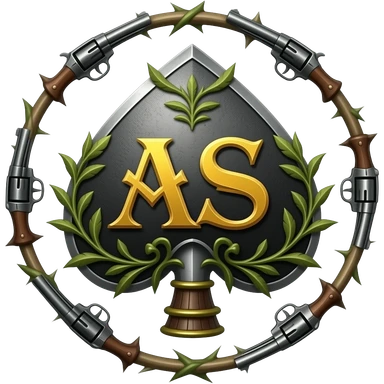 richly ornamented spade AS surrounded by tendrils of thorns and antique revolvers emoji