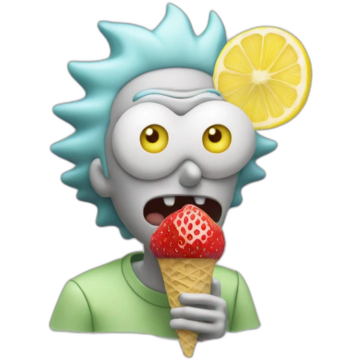 rick from rick and morty eating a strawberry lemon gelato emoji
