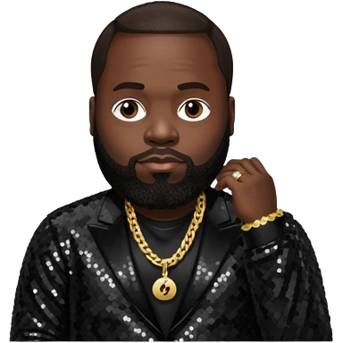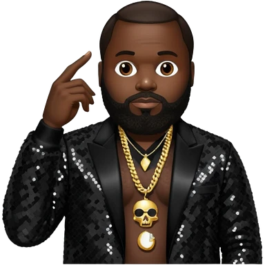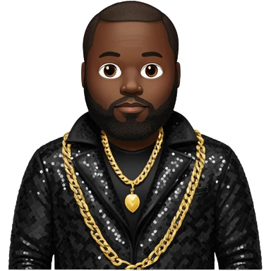 Rick Ross with dark brown hair, black sequin outfit emoji