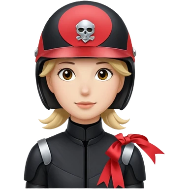 Rider helmet black matte at the back theres ribbon attached for female rider it is a full face only do not include the lady emoji | AI Emoji Generator