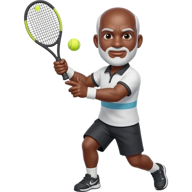 Right handed adult black male Tennis player bald male white short beard and mustache one demonstrating handed backhand wearing an adidas baseball cap on backwards emoji | AI Emoji Generator