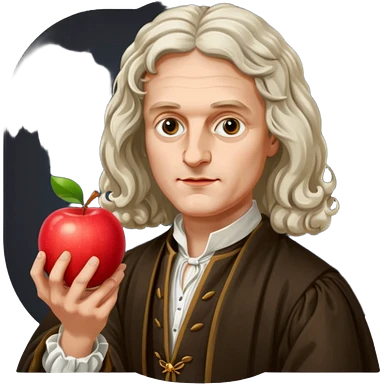 Isaac Newton wearing 17th-century aristocratic attire, hold an apple emoji