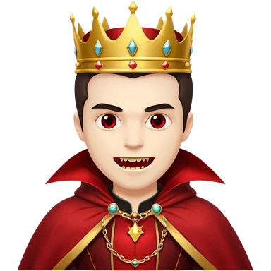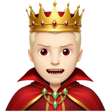 Vampire King, Pale king with red cloak and fangs, golden crown. emoji