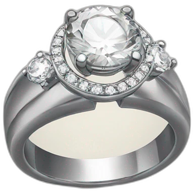 silver ring with a diamond, not big, not very shiny on a white background emoji