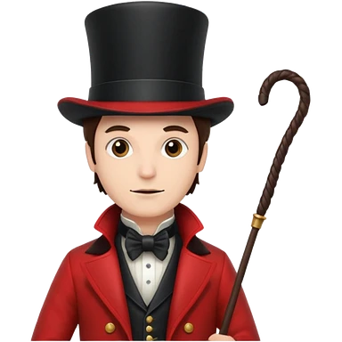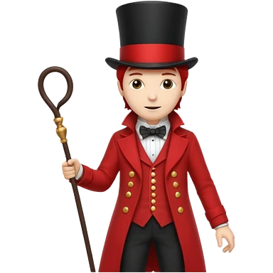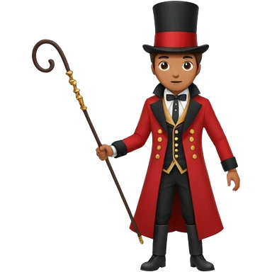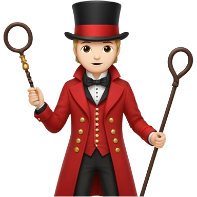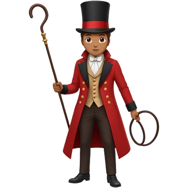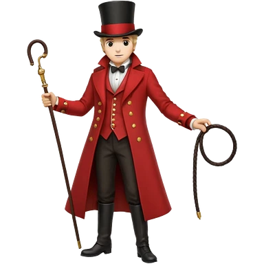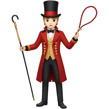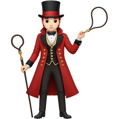 Ringmaster – Man in red coat and top hat, holding a whip or mic, full body emoji | AI Emoji Generator