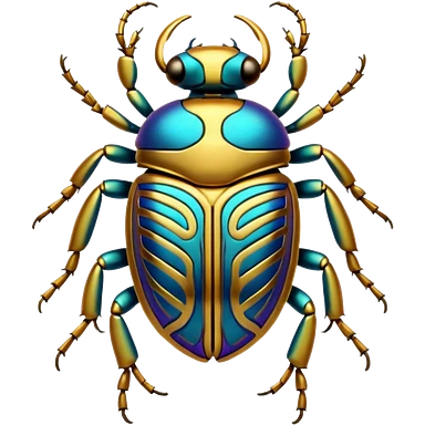 gold, shiny ancient Egyptian-styled holy metal scarab with intricate colorful markings and patterns emoji