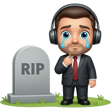 A grave stone that says "RIP", with a dirt pile in front of it with a skeleton hand coming out of the dirt emoji