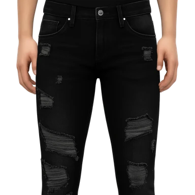 Ripped, destroyed skinny jeans inspired by Amiri style, heavily distressed denim with stacked fit, knee rips, frayed details, light wash, emoji style, centered, no model, no shoes, no extras. emoji | AI Emoji Generator