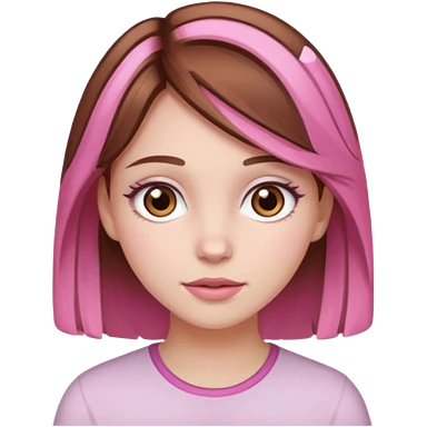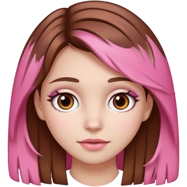 white skined girl with brown hair and brown eyes and pink highlights emoji
