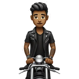 motorcycle boy with tattoos making a rizzing face white race emoji