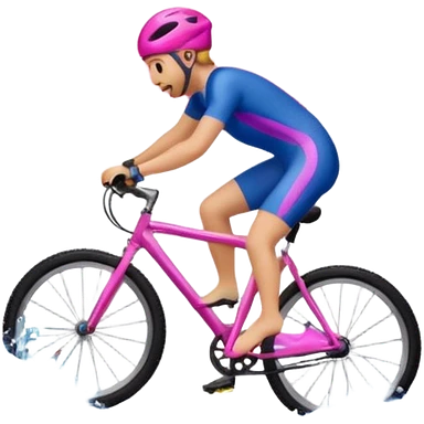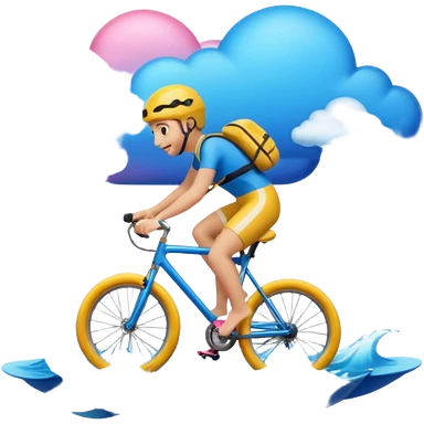 Emoji that first swims in ocean carrying a bicycle, afterwards rides the bicycle up a mountain and afterwards skis in pink clouds emoji