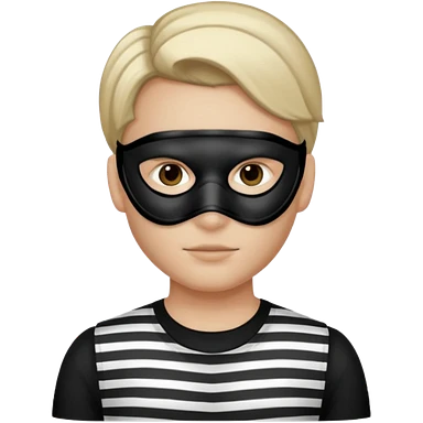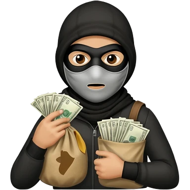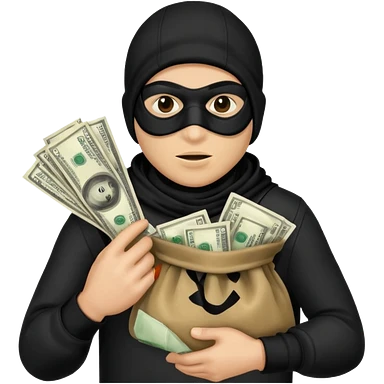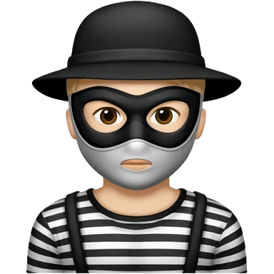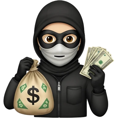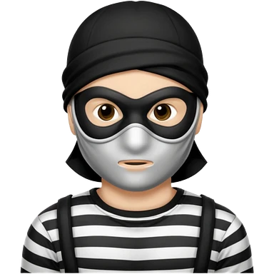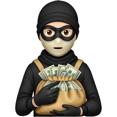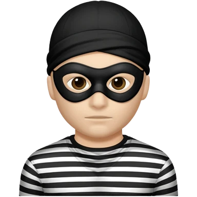 robber wears black eye mask, black beanies and black and white stibes shirt with one brown money bag beside him emoji