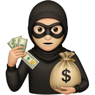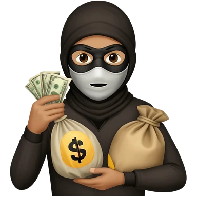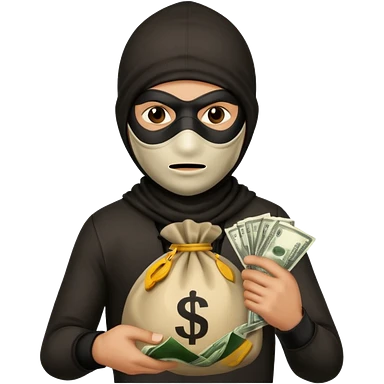 Robber emoji holding a 💰 wearing a mask that is made of robber suit without showing his hand the 💰 need to be in the left emoji