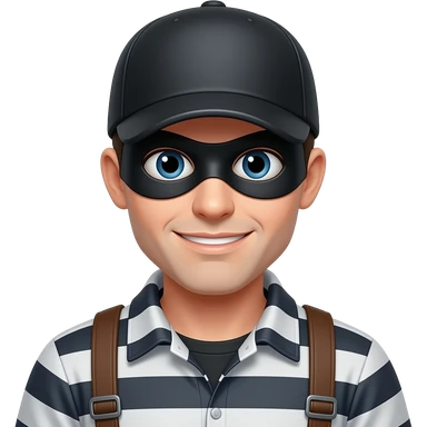 Robber with a shirt with white and black stripes holding a money bag also the robber is wearing a black robber hat and also has blond hair emoji