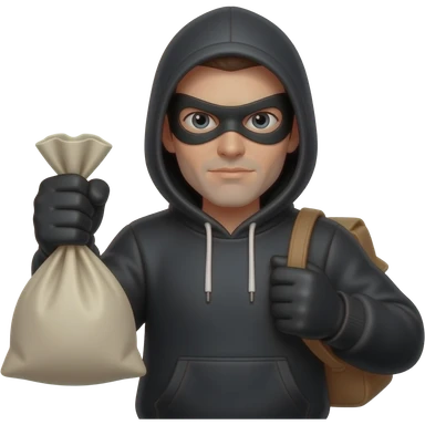 Robber Samsung version He holds a money bag, White and Black suit, Yellow hair,orange eyes and his robber Hat emoji