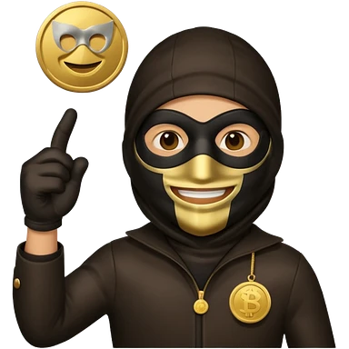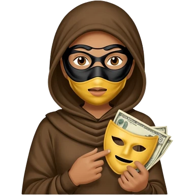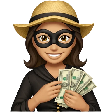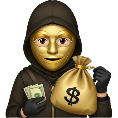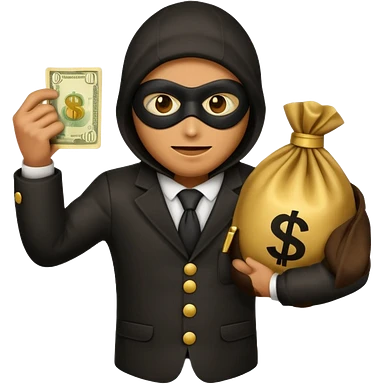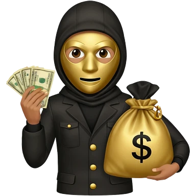 Robber emoji holding a 💰 wearing a mask that is made of robber dress emoji