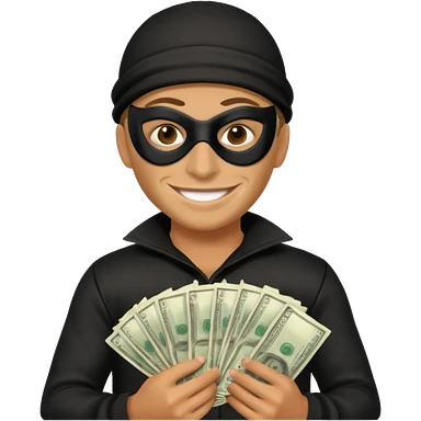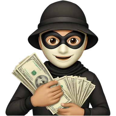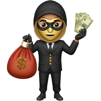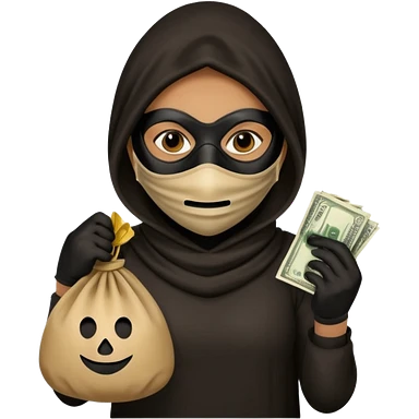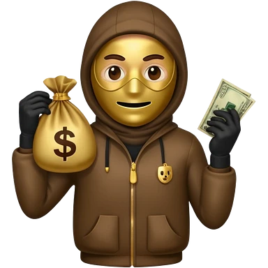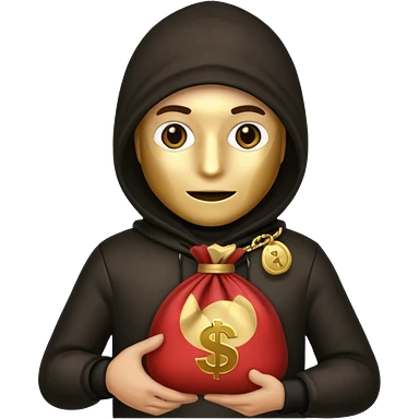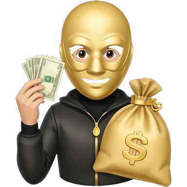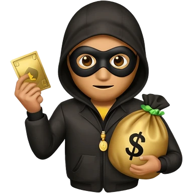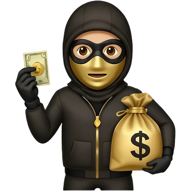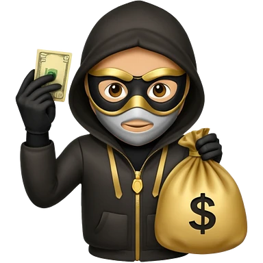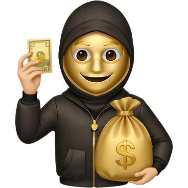 Robber emoji holding a 💰 wearing a mask that is made of robber suit without showing his hand the 💰 need to be in the left emoji