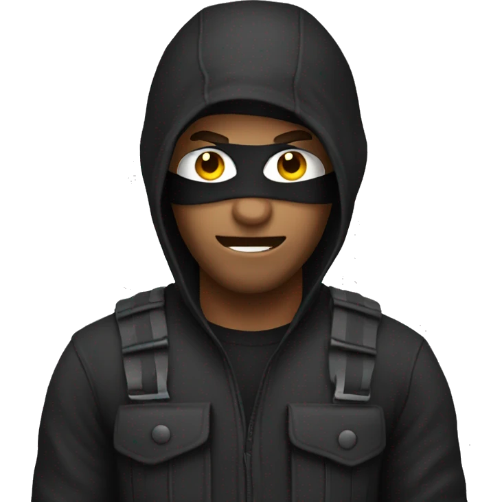 Robber emoji holding a 💰 wearing a mask that is made of robber dress emoji