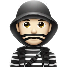 an emoji depicting a robber wearing a black-and-white striped shirt, a black mask, and a beanie emoji
