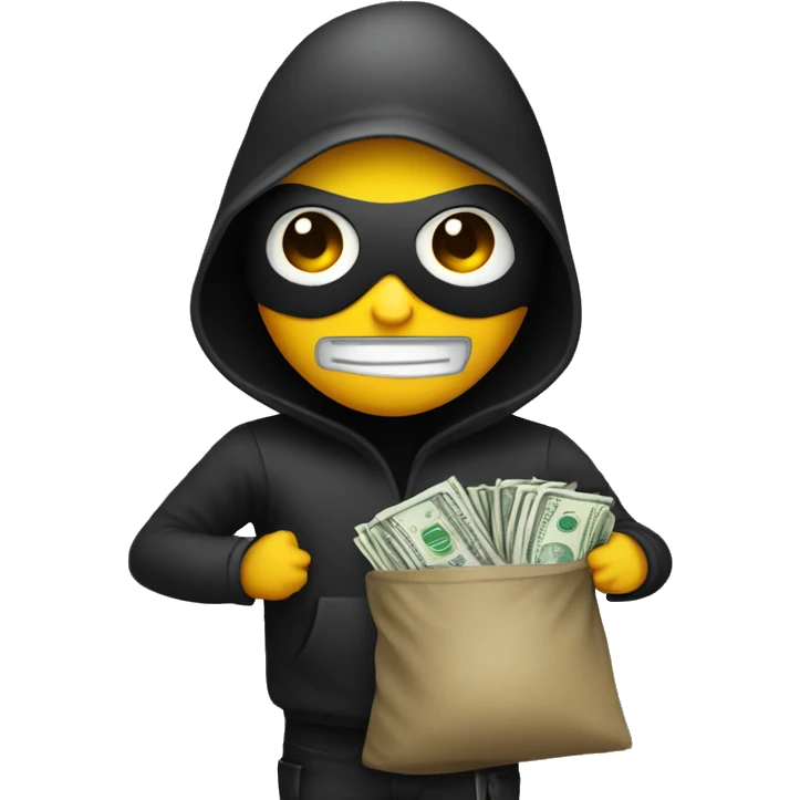 Man emoji with a black beanie a robber mask and a bag of money emoji