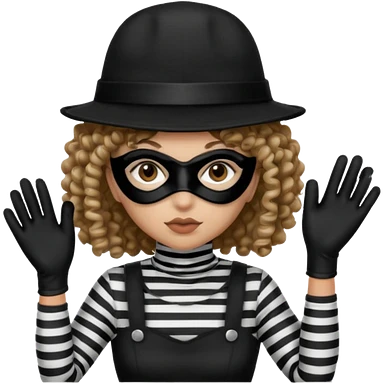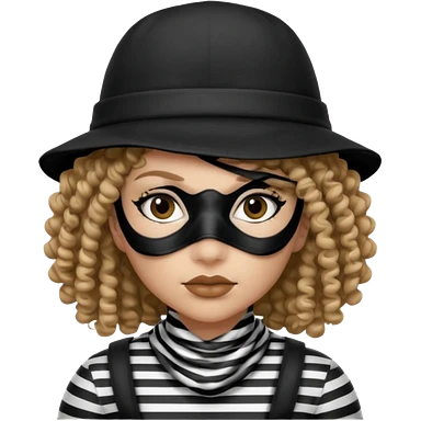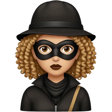 woman with robber mask concerned curly hair and robber outfit hat emoji