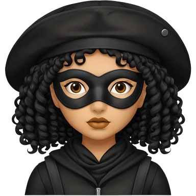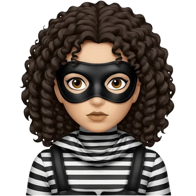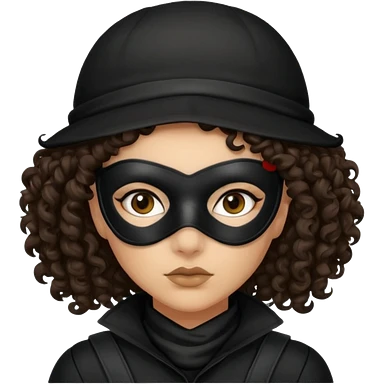 woman with robber mask concerned dark curly hair and robber outfit emoji